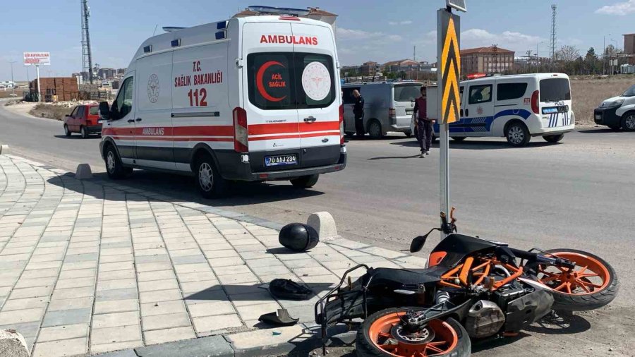 Karaman’da Devrilen Motosikletin Sürücüsü Ölümden Döndü