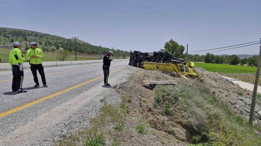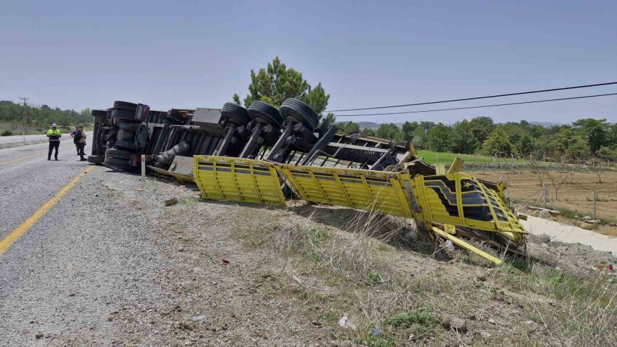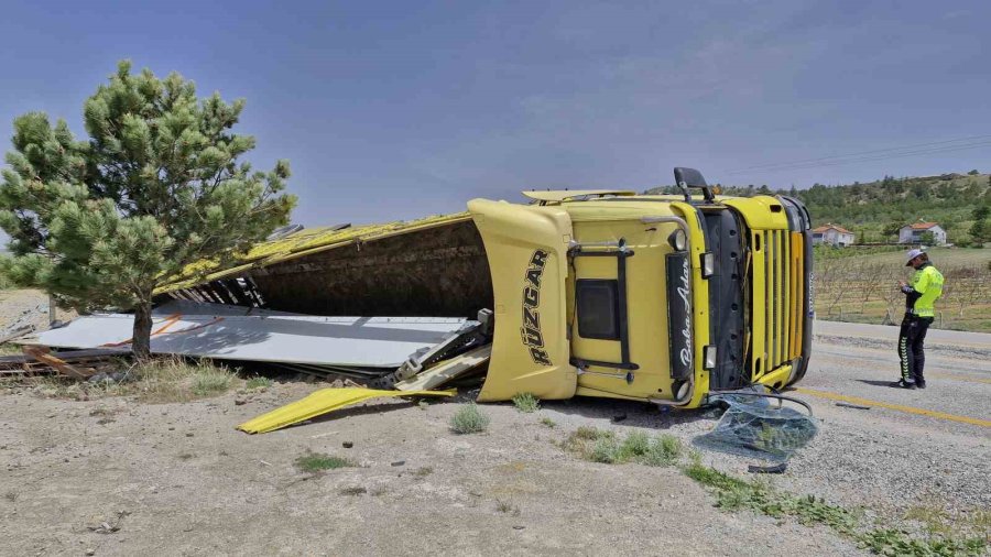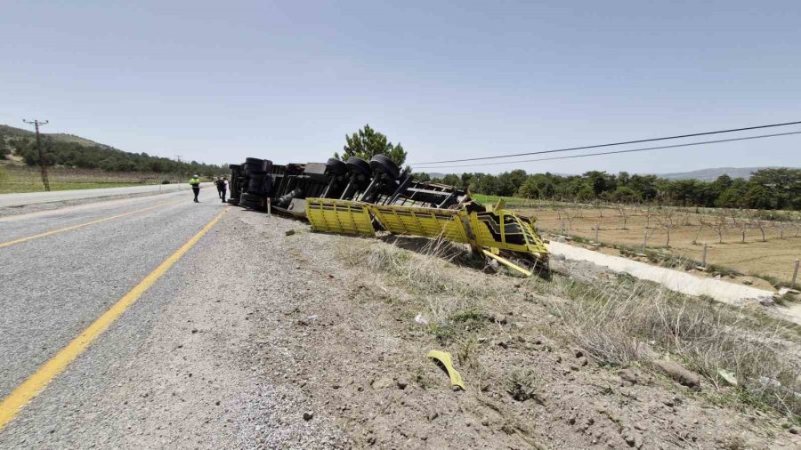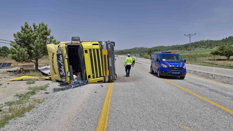 Karaman’da Devrilen Tırın Sürücüsü Yaralandı