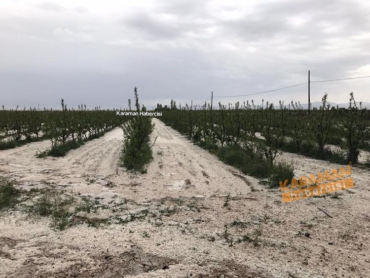 Karaman’da Dün Yağan Yağmur Bazı Yerlerde Dolu Oldu