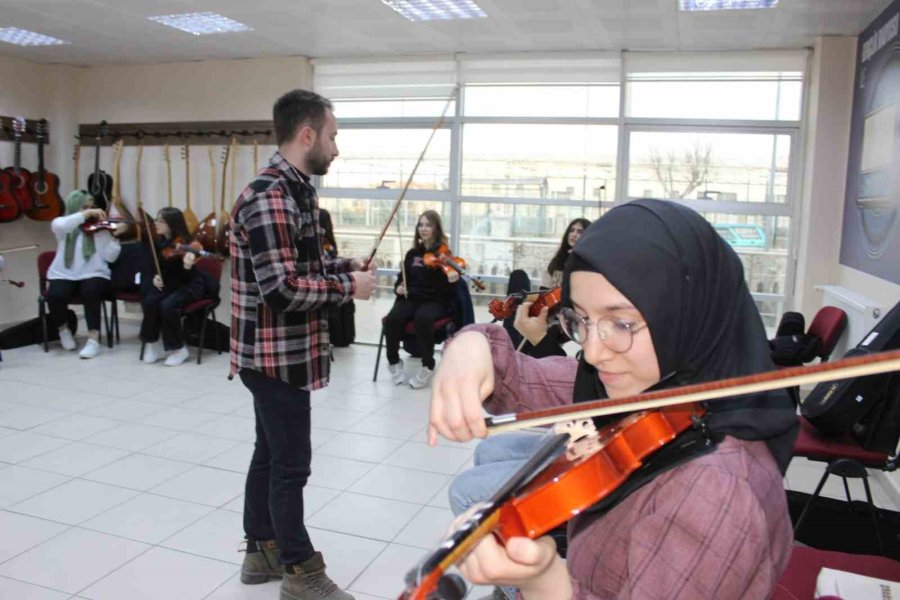 Karaman Gençlik Merkezi bünyesinde açılan keman kursunda eğitimler devam ediyor.