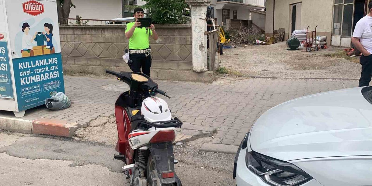 Karaman'da park halindeki otomobile çarpan elektrikli bisikletin sürücüsü yaralandı.