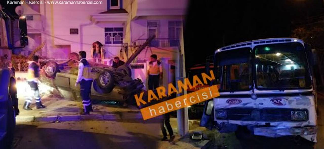 Kaza, gece saat 00.30 sıralarında Hisar Mahallesi Kızlar Türbesi kavşağında meydana geldi. Edinilen bilgiye göre, sürücüsü henüz belirlenemeyen 70 AP 097 plakalı otomobil kavşakta Ahmet B. (60), yönetimindeki 70 AN 317 plakalı bisküvi fabrikasına ait servis otobüsüyle çarpıştı.