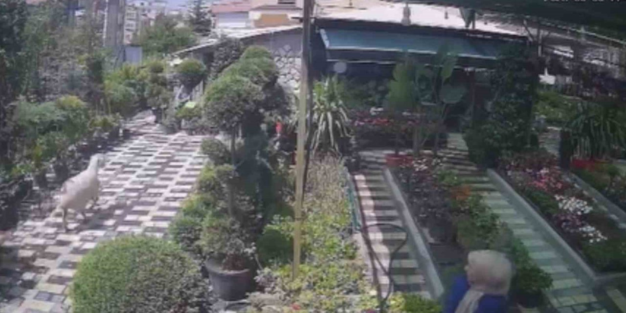 Karaman'da firar eden kurbanlık koyun, girdiği fidan satışı yapılan iş yerinin bahçesinde yakalandı. O anlar iş yerinin güvenlik kamerasına yansıdı.
