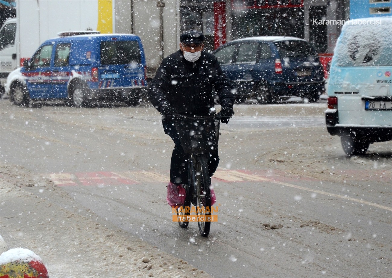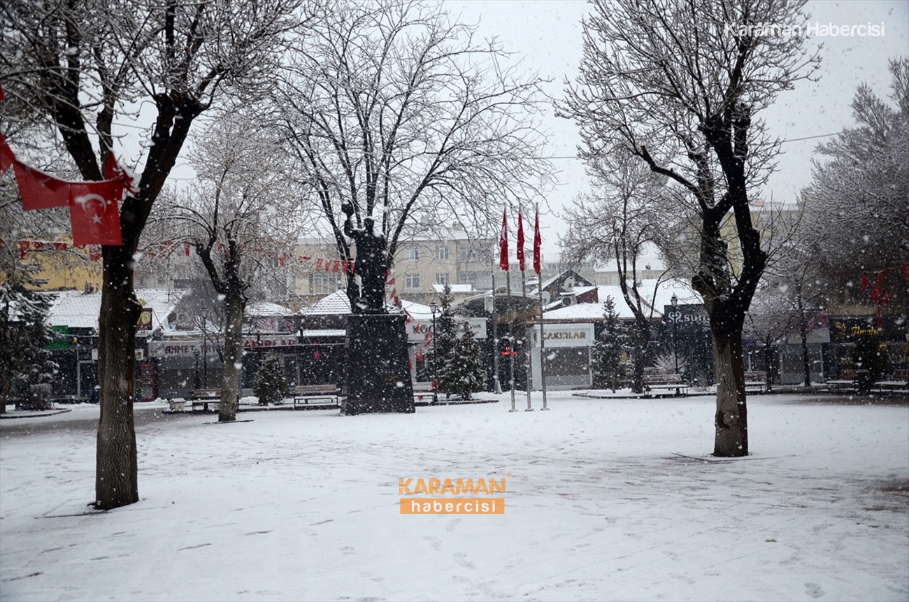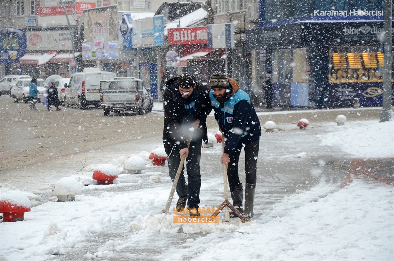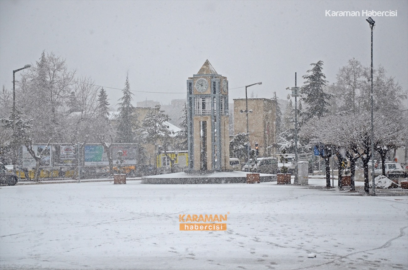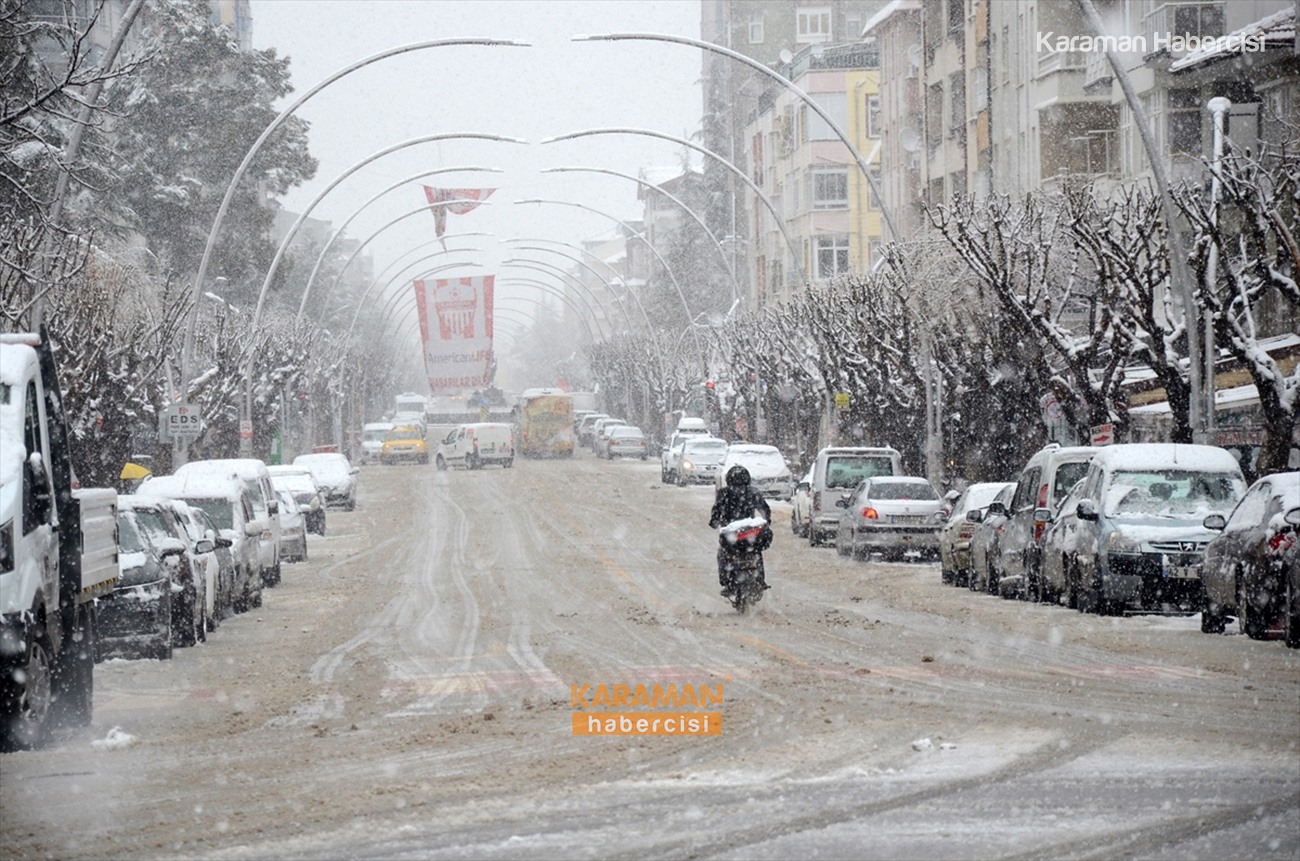 Karaman'da lapa lapa yağan kar nedeniyle ulaşımın aksamaması en büyük beklenti.