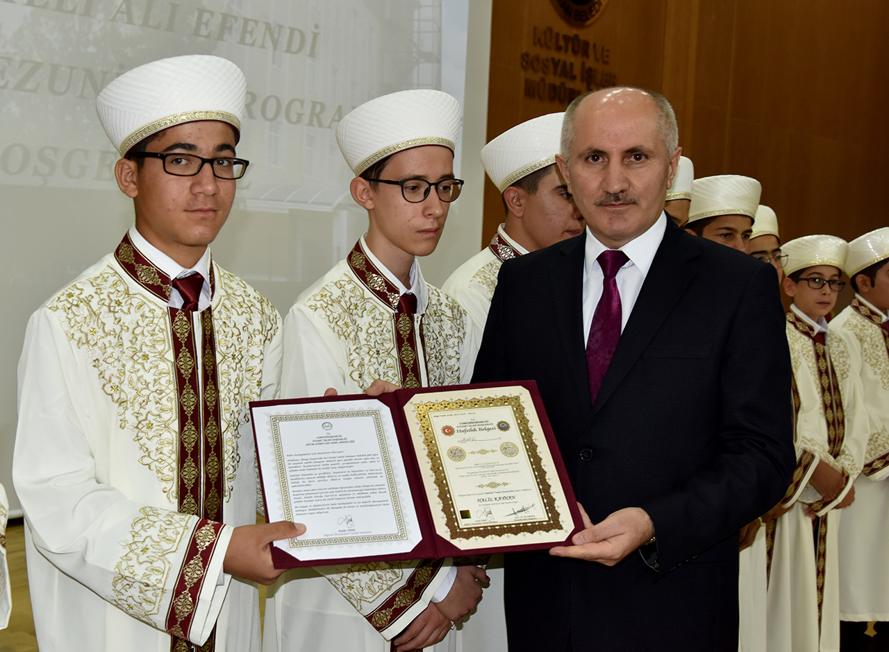 Daha sonra hafızlığını tamamlayan 22 öğrenciye belgeleri ve hediyeleri Karaman Valisi Fahri Meral ve İl Müftüsü Ketenci tarafından verildi.