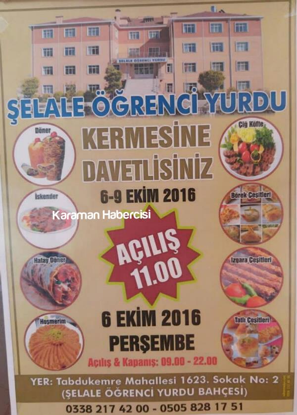 Yurt bahçesinde açılan kermeste döner, İskender, hatay döner, höşmerim, çiğ köfte, börek çeşitleri, ızgara çeşitleri, tatlı çeşitleri ziyaretçilere sunulmakta.