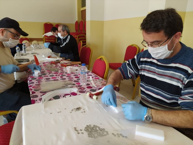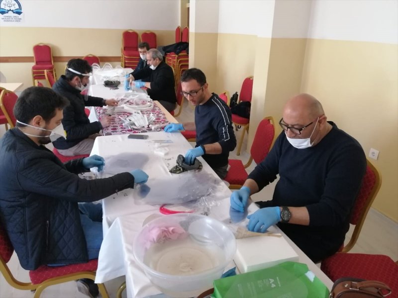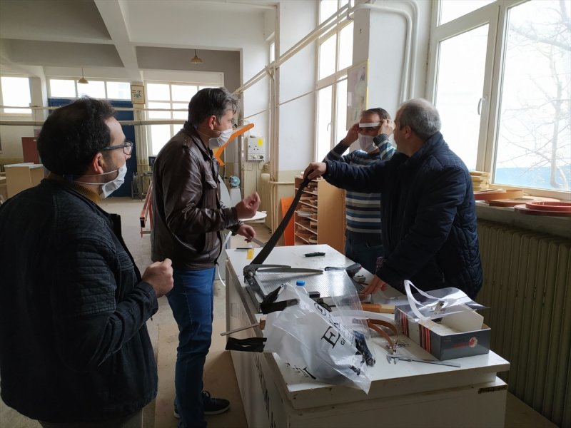 Karaman'da yeni tip koronavirüs (Kovid-19) ile mücadele kapsamında, Temizel Ünlü Mesleki ve Teknik Anadolu Lisesi ile Mesleki ve Teknik Anadolu Lisesi idareci ve gönüllü öğretmenleri, sağlık çalışanları için siperlikli maske üretiyor.