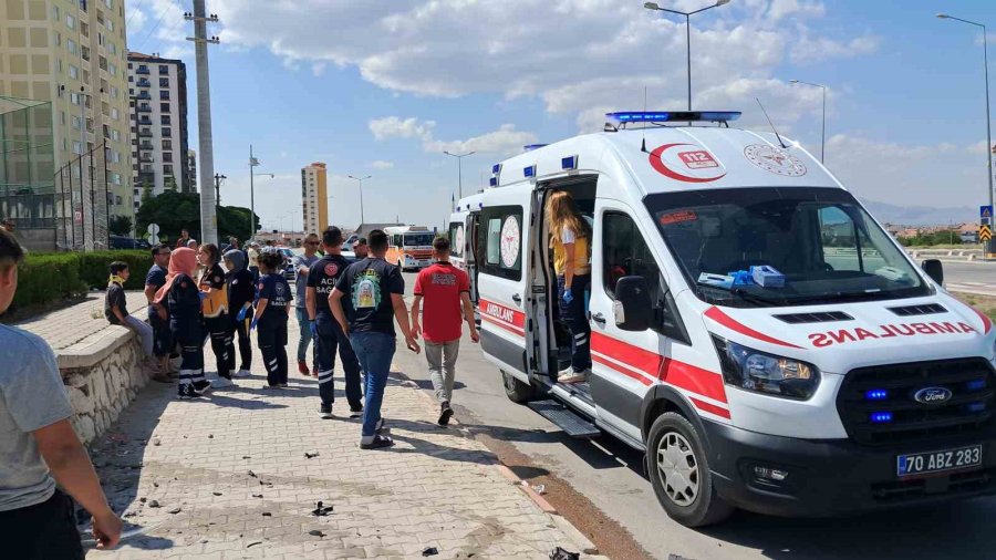 Kaza, Gevher Hatun Mahallesi Dereköy yolu üzerinde meydana geldi. Edinilen bilgiye göre, G.K. idaresindeki 70 ACB 802 plakalı Seat marka otomobil ile H.K. yönetimindeki 70 ABP 950 plakalı Peugeot marka otomobil kavşakta çarpıştı. Çarpışmanın etkisiyle savrulan G.K. idaresindeki otomobil kaldırıma çıkarak taş duvara çarparak durabildi. Kazada 70 ACB 802 plakalı otomobilin sürücüsü G.K.'nin 10 yaşındaki kızı Z.K. ile diğer otomobilin sürücüsü H.K. ve araçtaki A.K. (19) yaralandı. İhbar üzerine olay yerine sağlık ve polis ekipleri sevk edildi. Yaralılar ambulanslara alınırken, sağlık görevlisi kazada yaralanan ve sedyeye binmek istemeyen 10 yaşındaki kız çocuğuna boyunluk taktıktan sonra kucağına alarak ambulansa götürdü. Yaralılar daha sonra ambulanslarla Karaman Eğitim ve Araştırma Hastanesi'ne kaldırılarak tedavi altına alına alınırken, sağlık durumlarının iyi olduğu öğrenildi.