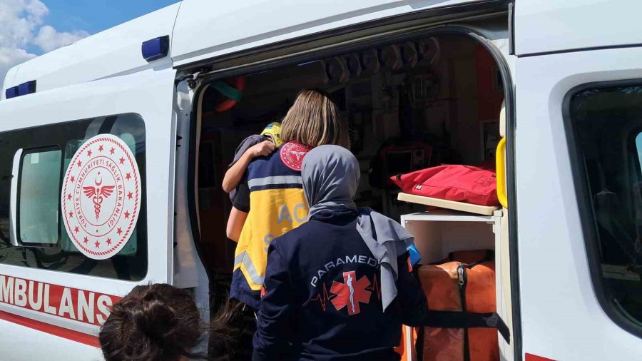 Karaman'da iki otomobilin çarpıştığı kazada 1'i çocuk 3 kişi yaralanırken, sağlık çalışanı kazada yaralanan ve sedyeye binmek istemeyen 10 yaşındaki kız çocuğunu ambulansa kucağında götürdü.