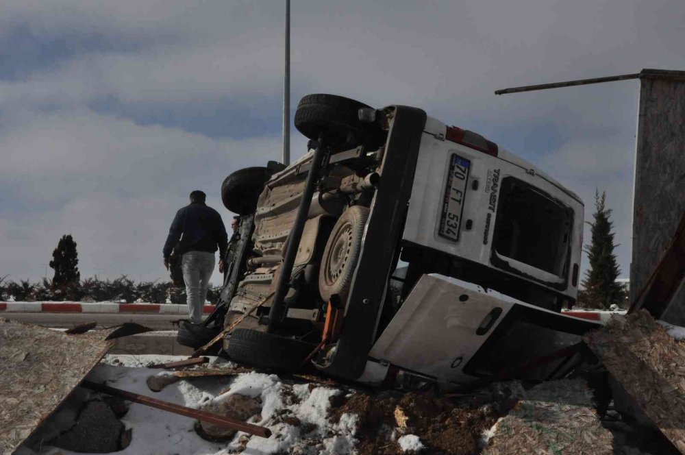 Karaman'da Kaygan Yolda Ani Manevra Kazaya Neden Oldu