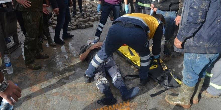 Oluşan çukur etrafında çalışan işçilerden Ahmet Pınar ve Eyüp Balasar, dengelerini kaybederek yaklaşık 3 metre derinliğindeki içi su dolu çukura düştü.