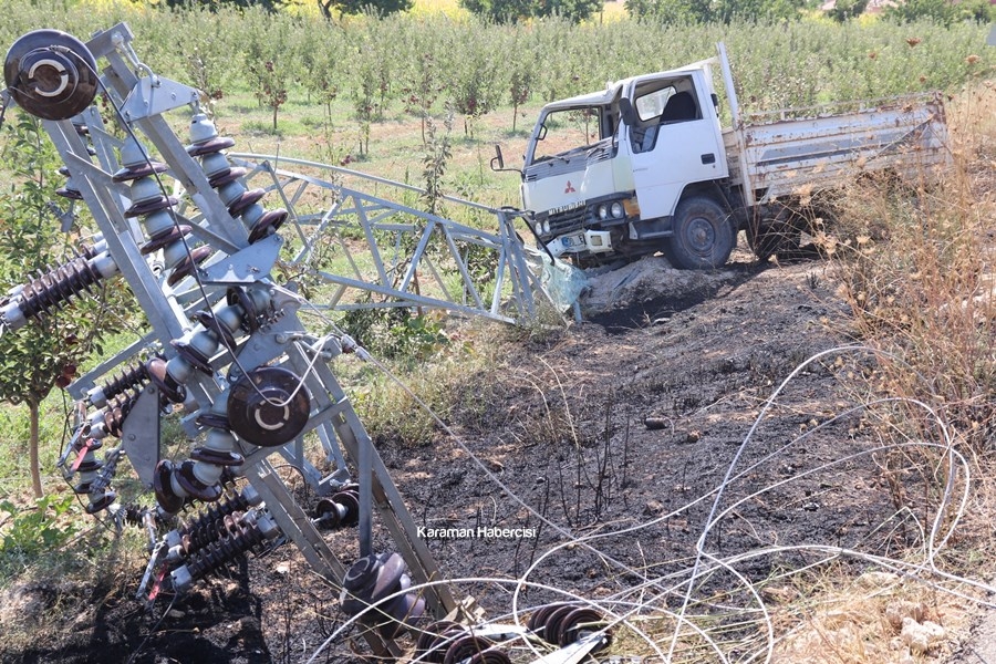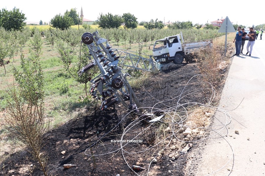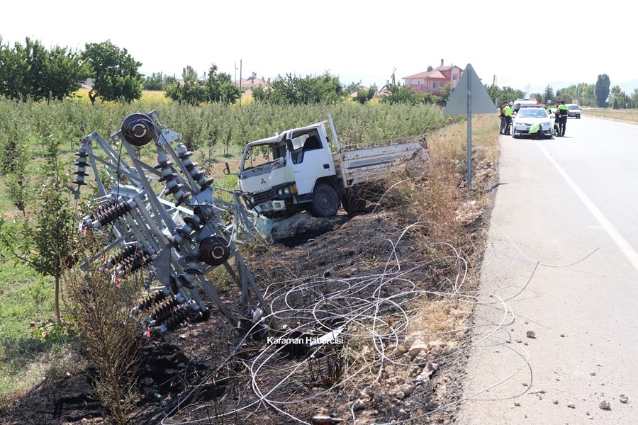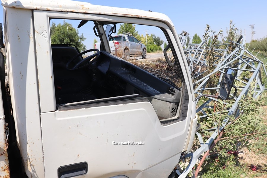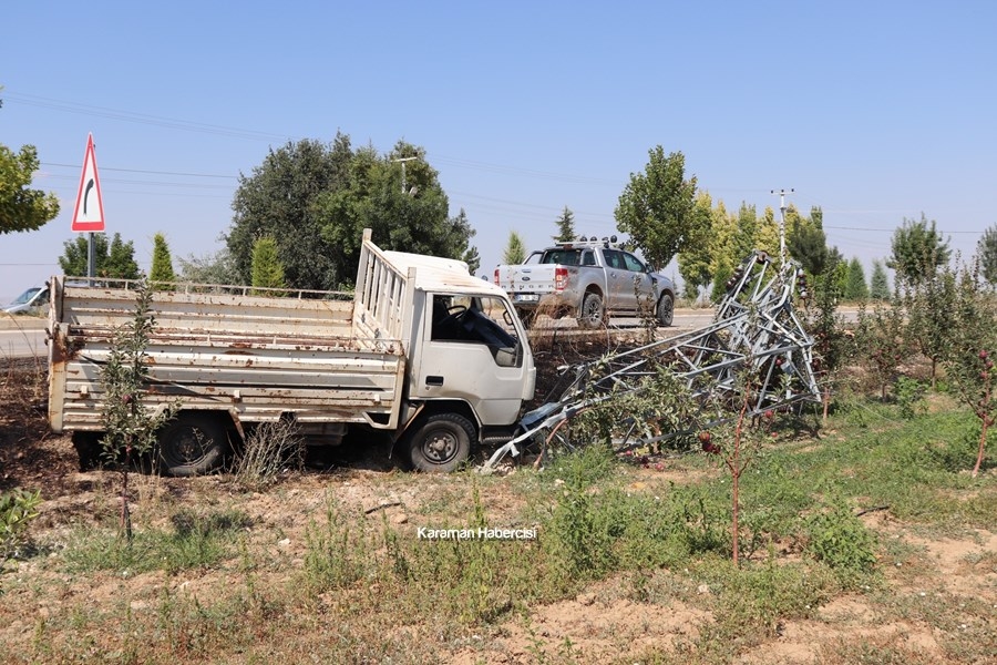 Karaman'da Kontrolden Çıkan Kamyonet Direğe Çarptı