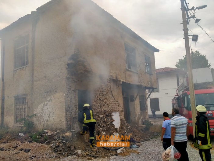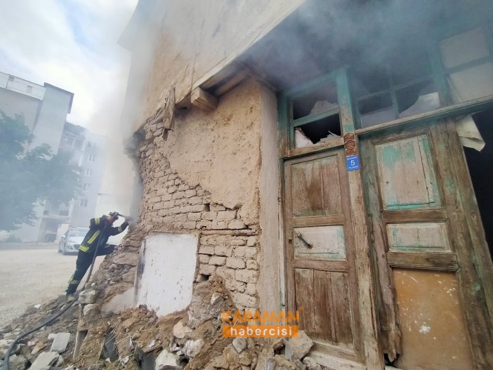 Karaman’da metruk binada ateşe verilen eşyalar yangına sebep oldu