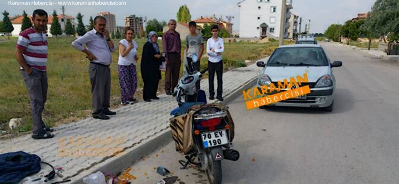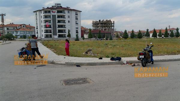 70 FK 160 plakalı motosiklet ile 711 nolu sokakta ilerleyen Hüseyin Havutçu (69) ile 70 EY 190 plakalı motosiklet ile 650 nolu sokaktan çıkan Mustafa Yıldız (77) tedbirsizlik ve dikkatsizlik sonuçu çarpıştılar.