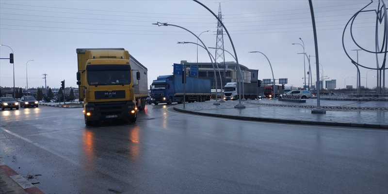 Karaman Organize Sanayi Bölgesi dışında toplanan kamyon sürücüleri, taşımacılık sistemindeki dijital takograf uygulamasına tepki göstermek için çevre yolunda tur attı.