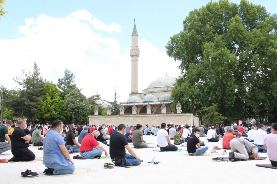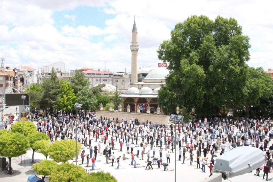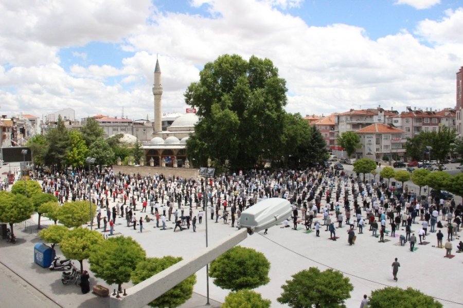 Korona virüs salgını tedbirleri nedeniyle 16 Mart tarihinden itibaren camilerde namaz kılmak yasaklanmıştı. Normalleşme planları kapsamında bugün il genelinde 62 camide ilk kez cemaatle birlikte namaz kılındı. Aktekke 15 Temmuz Demokrasi Meydanında sosyal mesafe kuralına uygun olarak 1.5 metre aralıklarla cemaatin saf düzeni alması sağlandı. Namaz öncesi görevliler namaz kılacak vatandaşları maskelerini takmaları konusunda uyarılarda bulunurken Karaman Belediyesi de namaz kılmaya gelenlere maske ve kâğıttan seccade dağıttı. Namazı İl Müftüsü Muhammet Lütfi Ketenci kıldırırken, 5 bin kişilik meydan tamamen doldu.