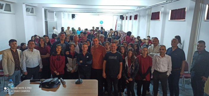 Okul Müdürü Muhammet Ali Fatih okulun eğitim yönü hakkında da bilgiler vererek usta-çırak ilişkisiyle devam eden bu eğitim sürecinin yıllarca devam ettiğini ve okulumuzun bu anlamda Ahilik teşkilatına öğrencilerimizin doğrudan üretime katılarak desteklediklerini belirterek Muhasebeciliğin nasıl bir meslek olduğunu, üniversite eğitimlerinin nasıl olduğunu anlattı.