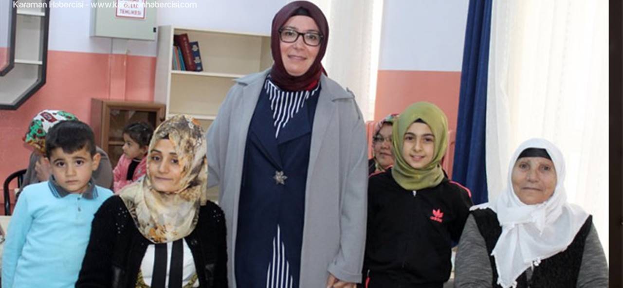 Karaman Valisi Fahri Meral’in eşi Hanımefendi Zehra Meral kursa gelen hanımlarla yakından ilgilenerek onlarla bir süre sohbet etti.