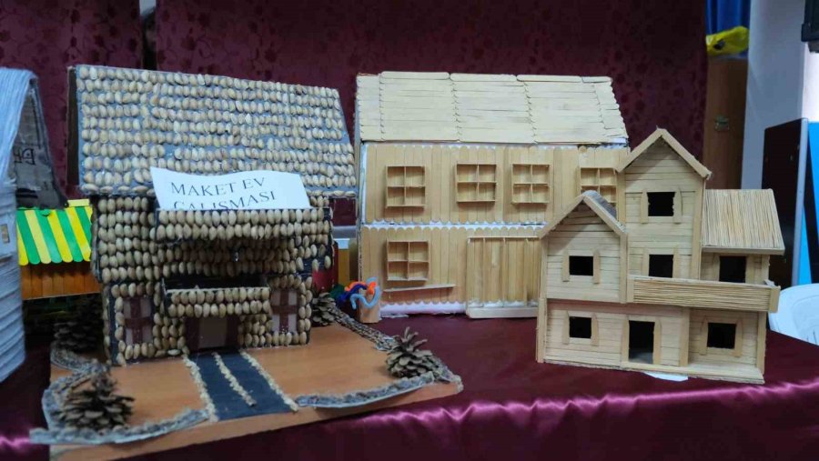 Öğrenciler ise eserleri yaparken atık malzemeleri değerlendirdiklerini söylediler.