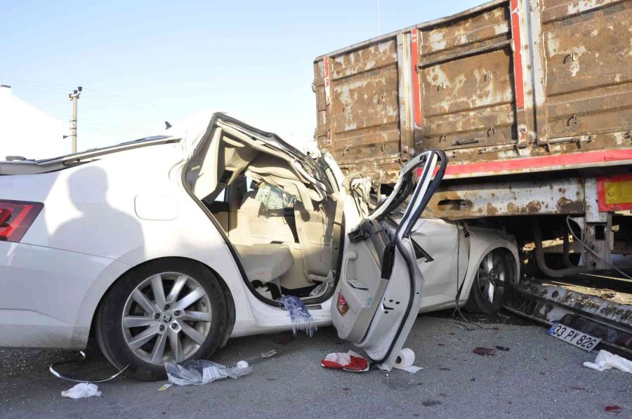 Karaman'ın Kazımkarabekir İlçesinde Otomobil Duran Çekiciye Arkadan Çarptı
