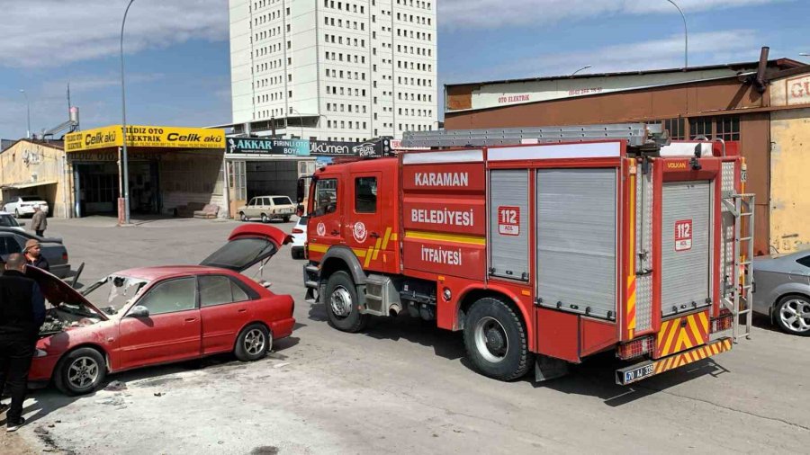 Karaman’da Park Halindeki Otomobil Alev Aldı
