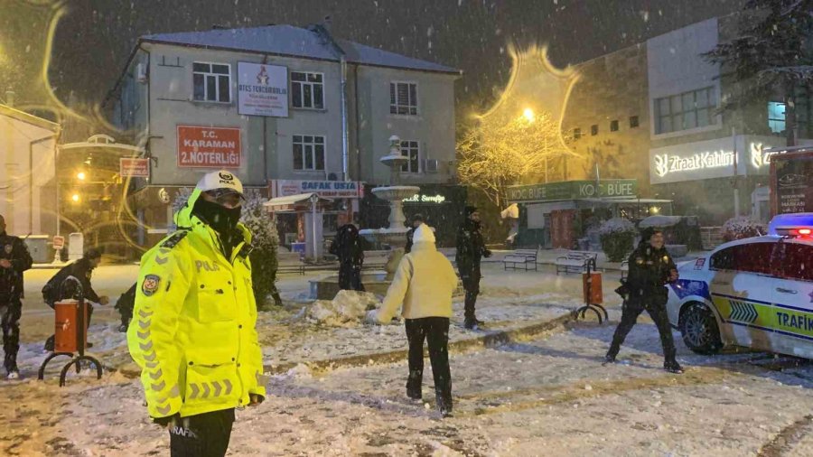 Karaman’da Polisler ve Gençler Kartopu Keyfi Yaşadı