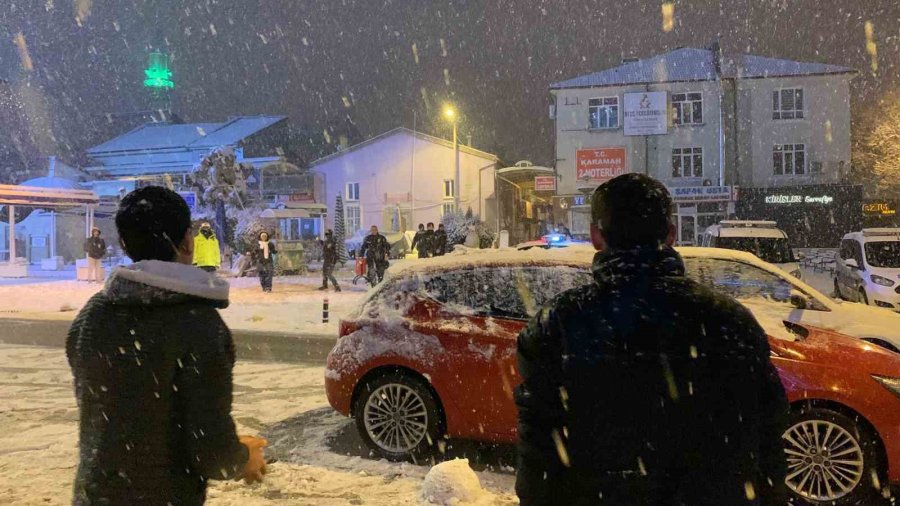 Karaman’da ikindi saatlerinde başlayan kar yağışı, akşam saatlerinde etkisini artırdı. Kent merkezi kısa sürede beyaz örtüyle kaplanırken, vatandaşlar da bu güzel manzarayı değerlendirmek için sokaklara akın etti. Özellikle gençler, kartopu oynayarak karın tadını çıkardı.