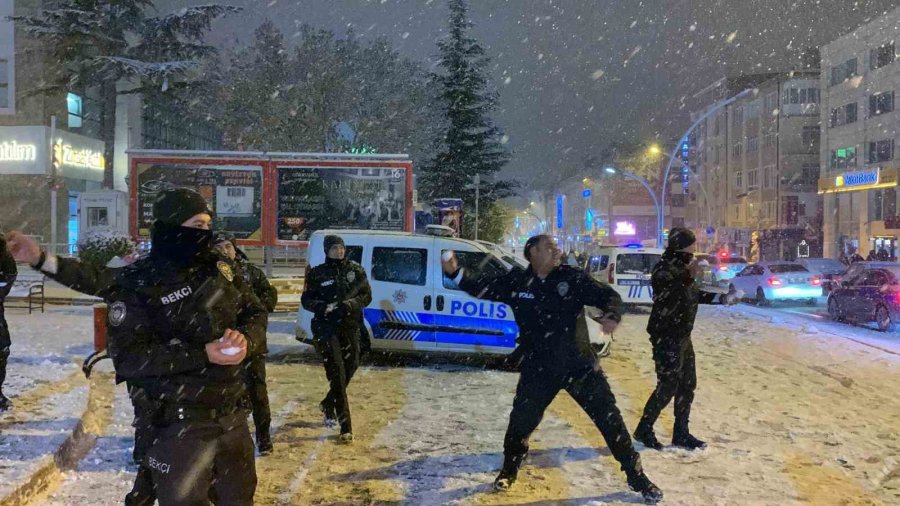 İsmet Paşa Caddesi’nde güvenlik amacıyla görev yapan polis ekipleri de bu neşeli atmosfere kayıtsız kalmadı. Gençlerle birlikte kartopu oynayan polisler, hem vatandaşların güvenliğini sağladı hem de onlarla keyifli anlar paylaştı. Beyaza bürünen caddede, polisler ve gençler arasında yaşanan bu samimi anlar, renkli görüntülerin ortaya çıkmasına neden oldu.