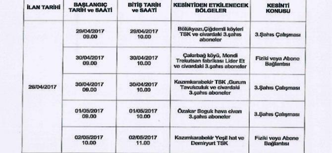 Medaş İşletme Müdürlüğünden yapılan yazılı açıklamada; Karaman 2 İşletmesi sorumluluk alanı içersinde yer alan aşağıda bilgileri belirtilen bölgelerde yapılacak çalışmalar nedeniyle programlı elektrik kesintisi yapılacaktır.Çalışmaların programlanan süreden erken tamamlanması halinde kesinti bitiş saaatinden önce elektrik verilebilecektir.