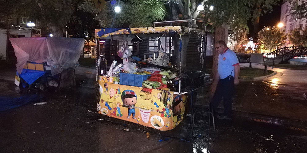 Olay, saat 01.30 sıralarında Tahsin Ünal Mahallesi Kuğulu Park arkasında meydana geldi. Edinilen bilgiye göre, sahibi tarafından kaldırım yanına kilitlenerek bırakılan seyyar mısırcı tezgahı biranda alev aldı. Tezgahın yandığını gören çevredeki vatandaşlar ise durumu hemen itfaiyeye haber verdi. Kısa sürede olay yerine gelen itfaiye, yanan mısırcı tezgahına su sıkarak söndürdü. İtfaiye, yaptığı incelemede yangının tezgah üzerinde bulunan mangal kömürünün yeniden tutuşması sonucu çıktığını tespit etti.