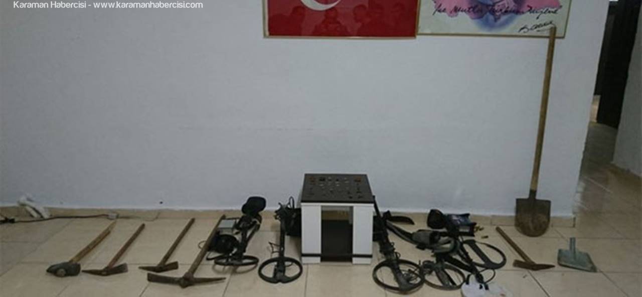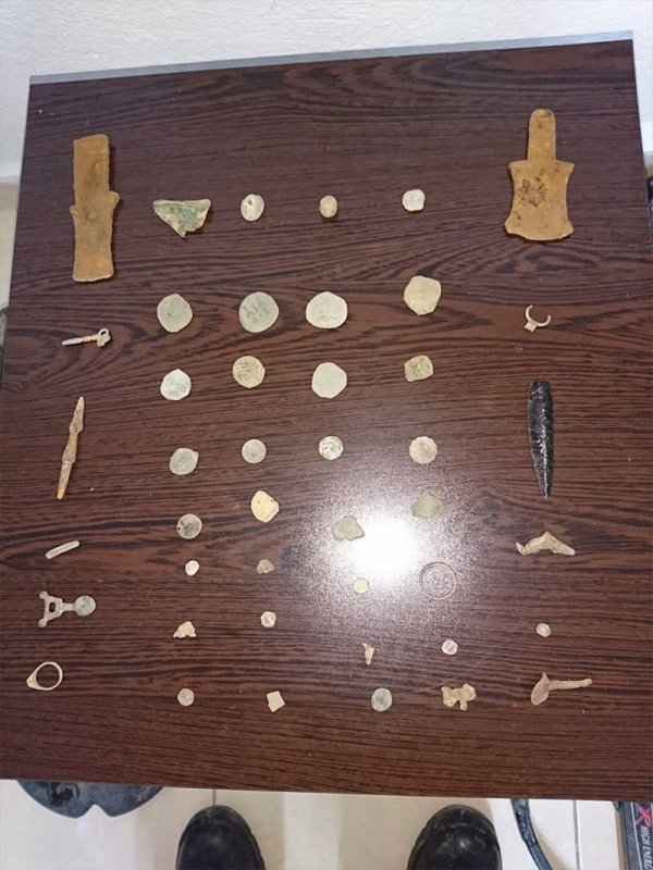 Aramada, tarihi eser olduğu değerlendirilen 22 sikke ve 21 obje ile 4 metal dedektörü ele geçirildi.