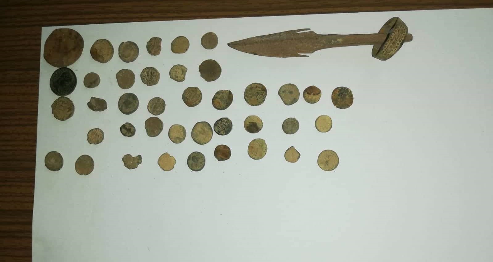 Bunun üzerine ekipler şahısları evlerinde mahkeme kararı ile arama yaptı. Yapılan aramada 40 adet Bizans dönemine ait bronz sikke, 2 adet obje, 4 adet tarihi dönemlere ait taş ve 1 adet metal arama detektörü ele geçirdi.
