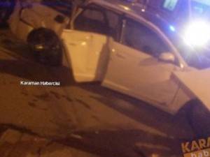 Karaman’da hafta sonu gece saatlerinde meydana gelen bir başka kazada ise Mut Caddesinde seyir halindeki otomobil yol kenarında bulunan asansörlü yük taşıma aracına çarptı.