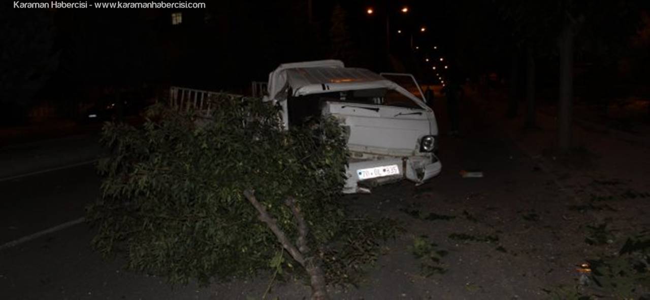 Sürücüsü öğrenilemeyen 70 DL 335 plakalı kamyonet, seyir halindeyken direksiyon hakimiyetini kaybedince kaldırıma çıkarak ağaca çarptı. Kazada, ağaç kökünden kırılırken, kamyonette büyük çapta maddi hasar oluştu.