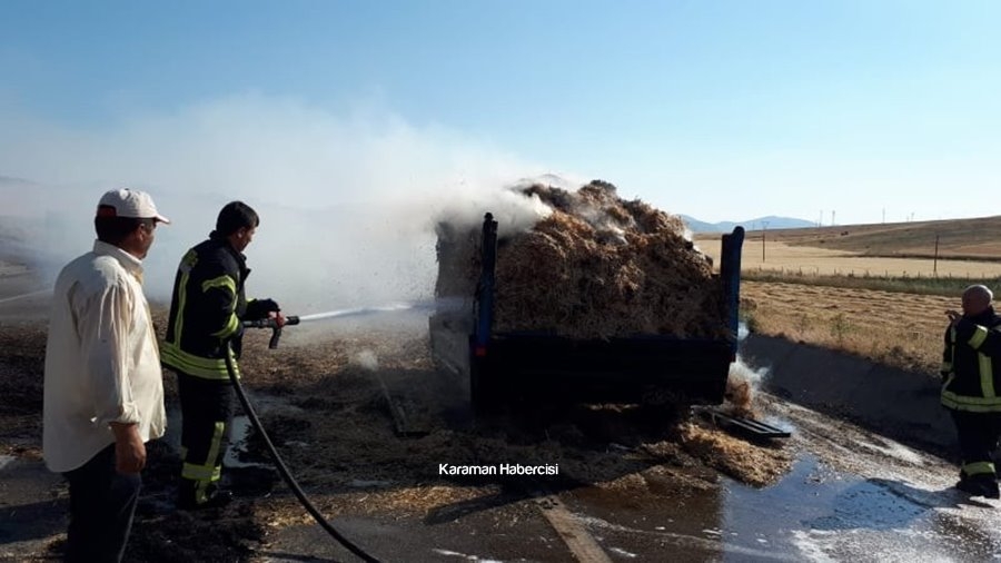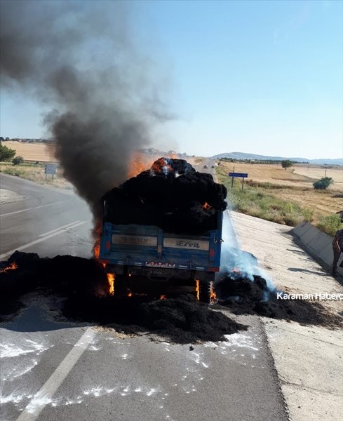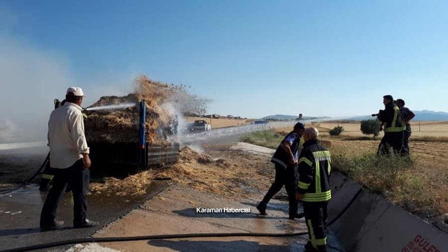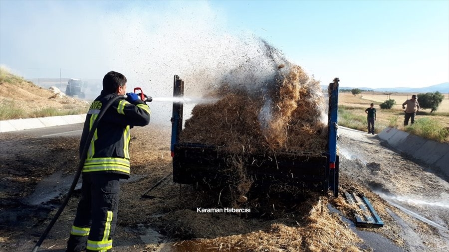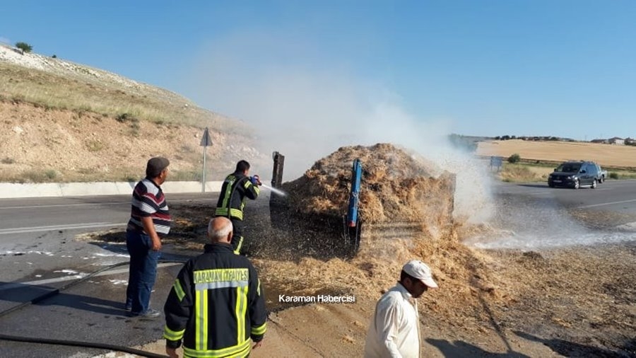 Karaman'da Trakrör Römorkunda Saman Yangını