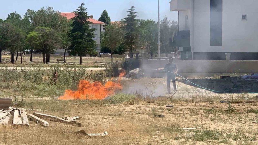 Karaman'da inşaat alanındaki atıkların tutuşması sonucu çıkan yangın büyümeden söndürüldü.