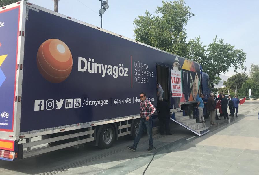 Vakıf haftası nedeniyle çeşitli illerde ücretsiz göz sağlığı taraması yapan mobil tır yarın Karaman'da olacak.