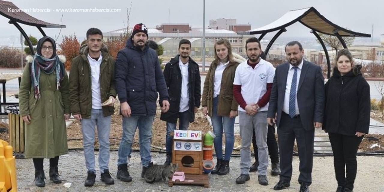 Karamanoğlu Mehmetbey Üniversitesinde (KMÜ) yeni kurulan öğrenci topluluklarından İletişim Topluluğu örnek bir projeye imza attı. Karaman Kedi ve Köpek Evi Projesi kapsamında ilk olarak yaptırılan kedi evleri sahipleriyle buluşturuldu. KMÜ Rektörü Prof. Dr. Mehmet Akgül'ün de iştirak ederek destek verdiği proje kapsamında evler, üniversite içerisinde ve il merkezinde çeşitli yerlere kuruldu. Öğrencileri, böyle bir sorumluluk projesi nedeniyle tebrik eden Rektör Akgül, "Hayvanlarımız bu soğuk kış günlerinde kendilerine sığınacak yer bulmuş olacaklar" diyerek projeye destek veren kurum ve kuruluşlara da teşekkür etti.