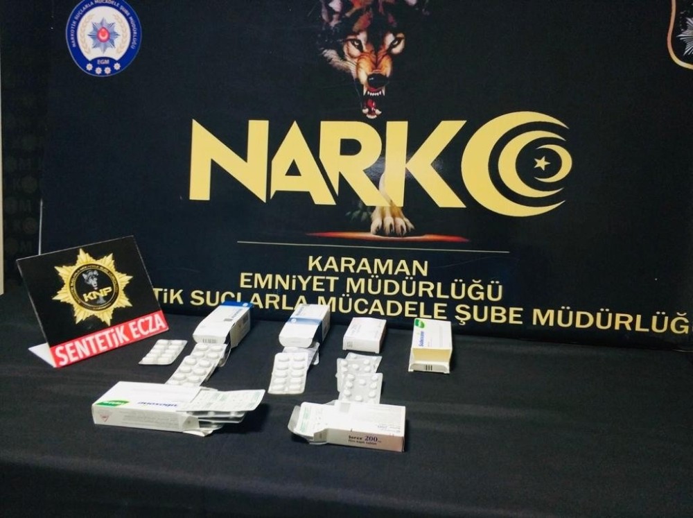 Karaman Emniyet Müdürlüğü Narkotik Suçlarla Mücadele Şubesi ekipleri, uyuşturucu ticareti yaptığı iddia edilen T.B, C.B ve D.A'yı yakaladı. Şüphelilerin üst aramasında ve evlerinde 330 uyuşturucu hap ele geçirildi.