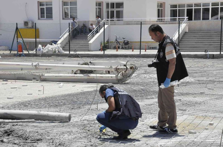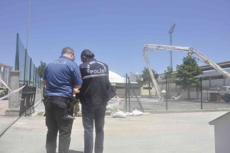 Karaman'da basketbol sahasının temel çalışmaları sırasında yerinden çıkan beton pompasının demir kolu üzerine düşen işçi ağır yaralandı.