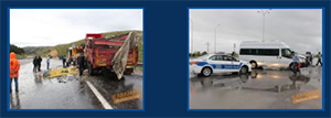 İlk kaza, Karaman-Mersin Karayolunun Sertavul mevkiinde meydana geldi. Alınan bilgiye göre, Ali Y. (60) yönetimindeki kayısı yüklü 70 AG 971 plakalı kamyon, yağış nedeniyle kayganlaşan yolda virajı alamayarak devrildi. Devrilen kamyonun kasasındaki kayısılar ise yola saçıldı. Bu kazanın hemen sonrasında Gökhan D. (28) idaresindeki 42 ETF 78 plakalı otomobilde devrilen kamyona arkadan çarptı. Yaralanan her iki sürücüde çağrılan ambulanslarla kaldırıldıkları Karaman Devlet Hastanesinde tedavi altına alındı. Yaralıların sağlık durumlarının iyi olduğu öğrenildi. Devrilen kamyon nedeniyle Mersin’den Karaman’a geliş istikametinde yolun tek şeridi trafiğe kapandı. Yapılan 2 saatlik kurtarma çalışmasıyla devrilen kamyonun çekici ile olay yerinden kaldırılmasından sonra yol kapanan şeridi yeniden ulaşıma açıldı.