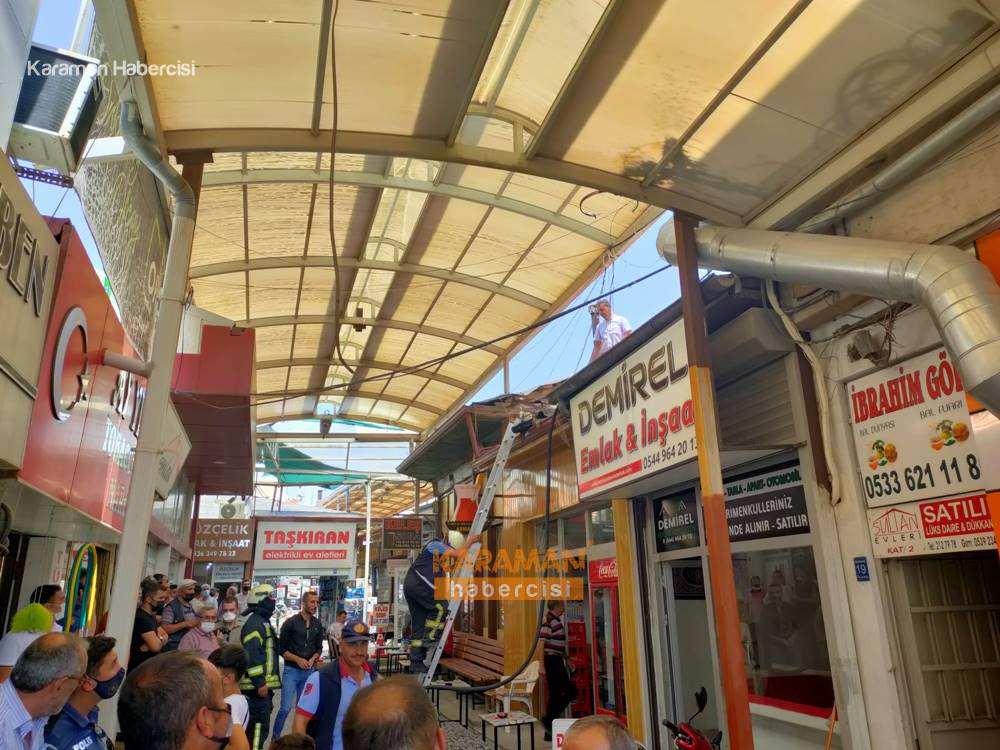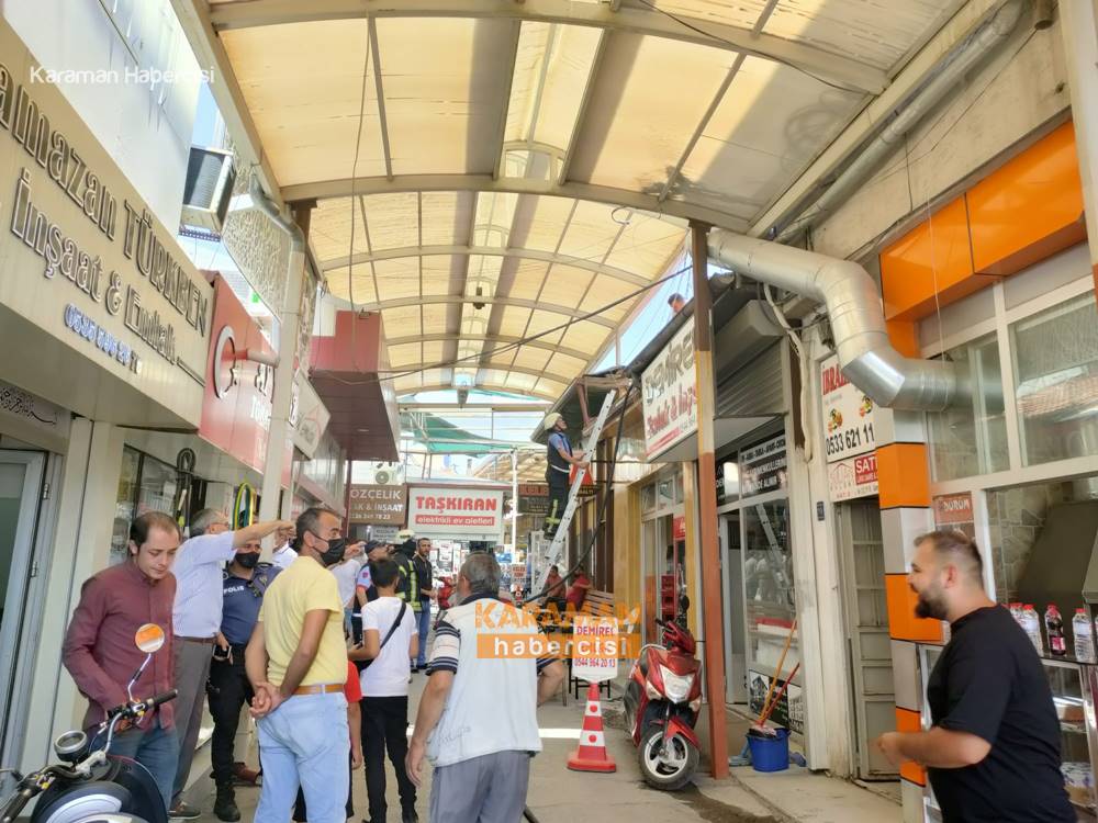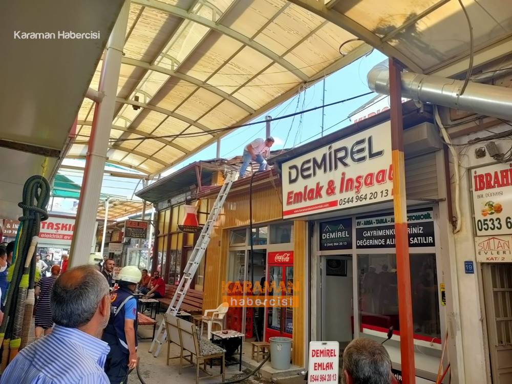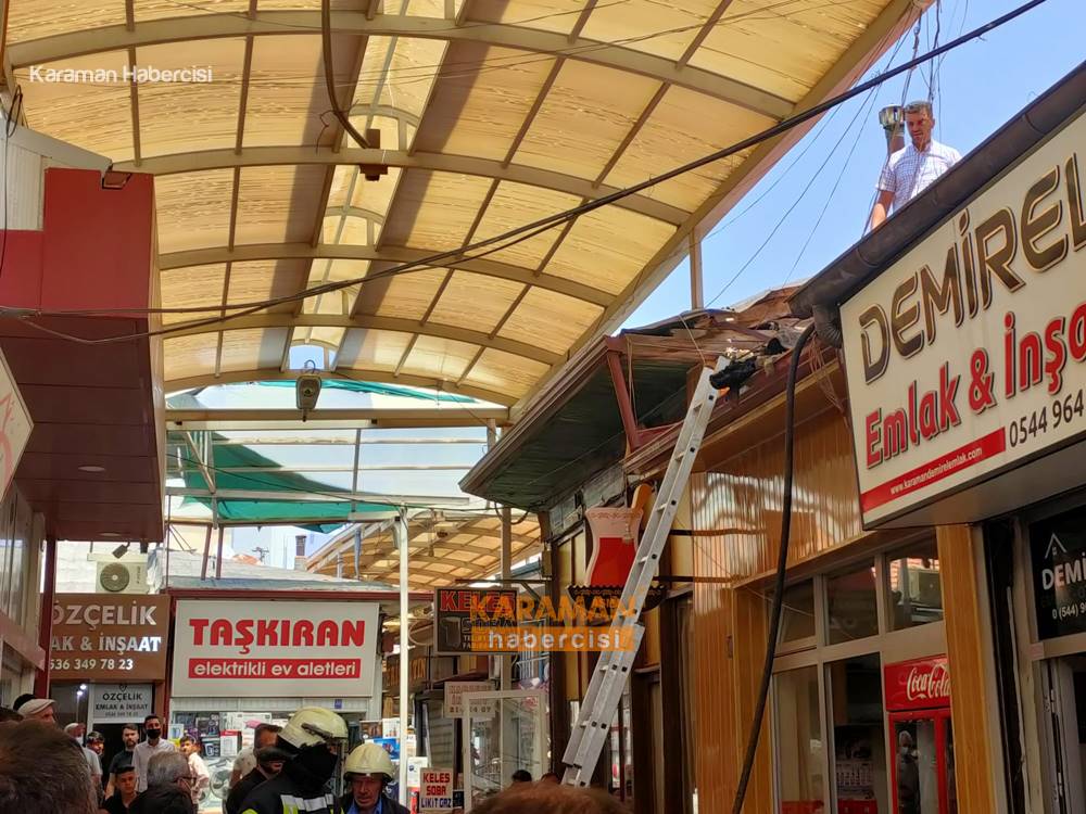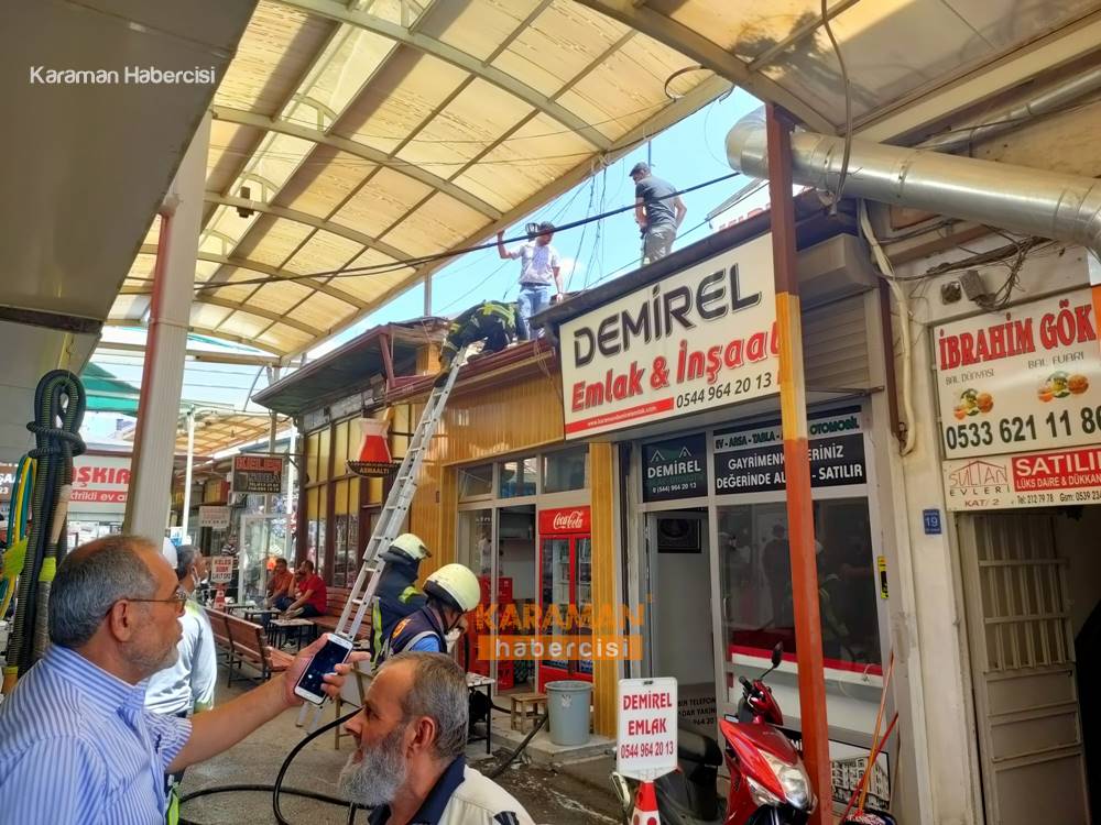 Karaman'da öğle saatlerinde ayakkabıcılar ve semerciler sokağı arasında kalan işletmelerin çatı kısmında alevler yükseldi.