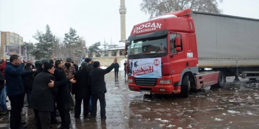 Daha sonra un yüklü 2 tır, dualarla Suriye'ye uğurlandı.