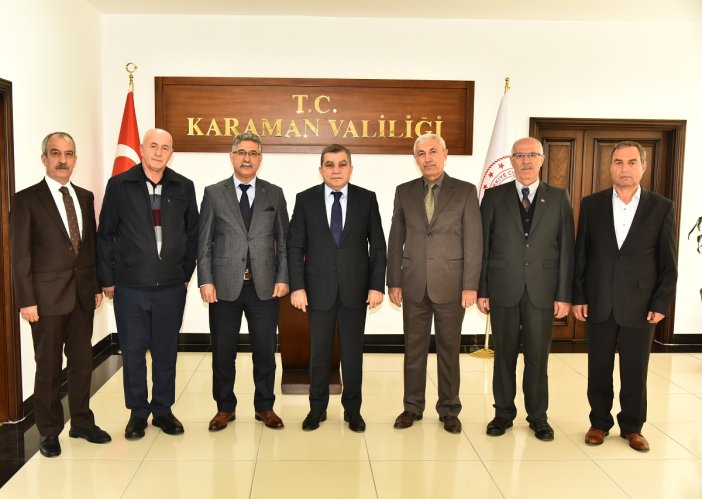 Vali Mehmet Alpaslan Işık, Türkiye Polis Emeklileri Karaman Şube Başkanı Hüsamettin Yıldırım ve yönetim kurulu üyelerini kabul etti.