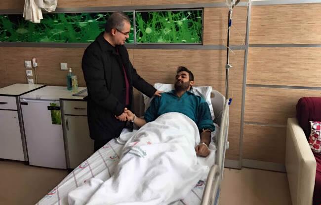 Türk ordusunun El-Bab Bölgesinde DEAŞ militanlarına yönelik sürdürdüğü operasyonda yaralanan ve Kilis Devlet Hastanesinden, Vali Tapsız’ın talimatlarıyla gönderilen ambulans ile ilimiz Devlet Hastanesine getirilen ve tedavisine burada devam edilen hemşerimiz piyade uzman çavuş Uğur Yılmaz’ı ziyaret eden Vali Tapsız, bire bir ilgilendiği Yılmaz’a geçmiş olsun dileklerinde bulundu.