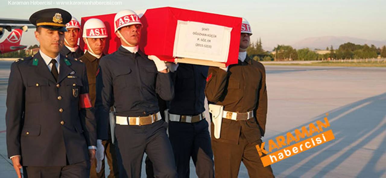 Hakkari'nin Şemdinli İlçesi Tekeli üs bölgesine PKK'lı teröristlerce düzenlenen saldırıda şehit olan sözleşmeli er 22 yaşındaki Oğuzhan Küçük memleketi Karaman'da toprağa verildi.