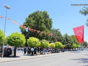 Karamanlılar aşırı sıcaklara rağmen şehit polise son görev için Aktekke Meydanına geldiler