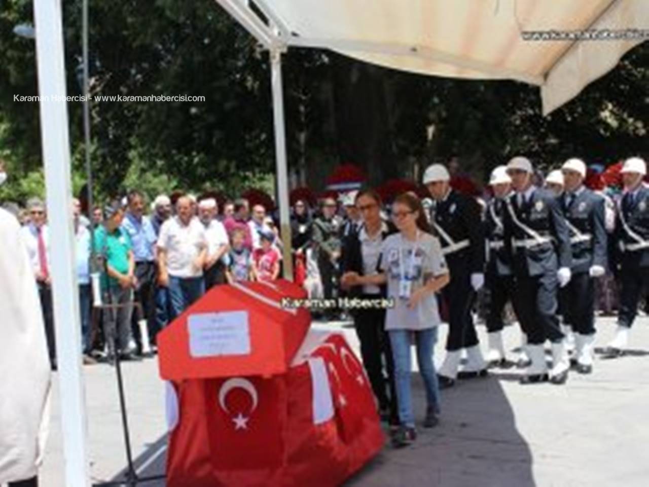 Cenazeye şehidin yakınları, arkadaşları ve şehidi yalnız bırakmayan Karamanlılar katıldı. Şehit yakınlarından annesi ve eşinin sağlık ekipleri nezaretinde katıldıkları cenaze töreni sonrası kızı tabutunun başına gelerek babası ile son kez helalleşti.