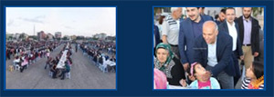 Düzenlenen iftar yemeği programına Karaman Belediye Başkanı Ertuğrul Çalışkan, Ak Parti İl Başkanı Mehmet Er, Ak Parti Karaman Milletvekili Recep Şeker, Ak Parti Milletvekili Adayları Av. Selman Oğuzhan Eser ve Av. Hüseyin Mutlu Katıldı. Meydanda iftarı bekleyen Karamanlılarla selamlaşan Başkan ve vekil adayları vatandaşların Ramazan Ayını tebrik ederek sohbet ettiler.