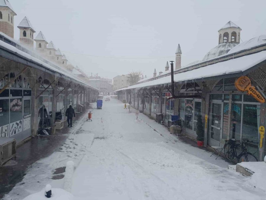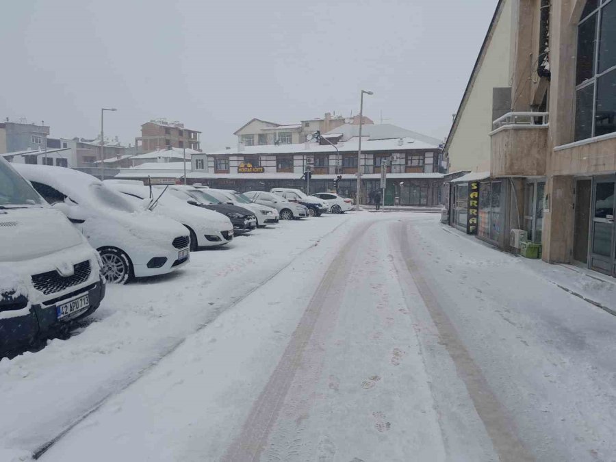Konya'nın Karapınar ilçesinde gece saatlerinde başlayan kar yağışı sabah saatlerinde etkisini artırarak ilçeyi beyaz örtüyle kapladı.